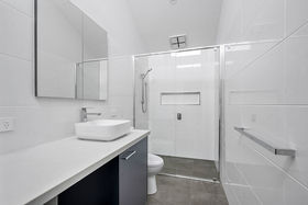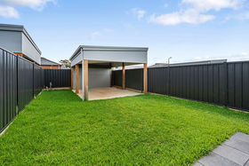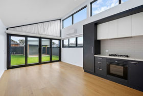 The open-plan kitchen, meals and living area forms the main living zone, complete with a dishwasher and practical storage. The light-filled interior enhances the home's fresh and contemporary feel.