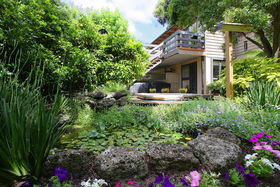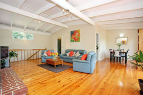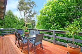 Hidden in a lush landscaped garden setting, this spacious 4-BR BV sanctuary offers the ideal entry point for families seeking the Wonga Park lifestyle. Indeed this stylishly rendered retreat is set on 894 sqm. (approx.) and is centrally located near the village and transport. Walk through the arbours into a private world of beautiful landscaped gardens. The light-splashed interior features high vaulted ceilings and stunning garden views, and is styled for effortless living with brand new carpets, screening blinds, polished floors and fresh neutral tones. The spacious design spans over two levels and boasts 4 bedrooms (3 with BIRs), serviced by a spa bath bathroom and deluxe master ensuite. Three zoned living areas invite easy living and entertaining. Relax beside the wood fire heater in the big lounge/dining room. Downstairs is a huge rumpus room for parties/teens, along with the option of a 4th-BR or home office - with own external entry. The well-equipped kitchen has 900mm oven and dishwasher and flows into a family/meals area. A brand new entertainer's deck is perfect for soaking up the treed outlook and there's also a paved BBQ area. Children can play in the secluded landscaped gardens, while the handyperson will love the under-house workshop and extensive storage. Extras: GDH, split system A/C and double carport. In a prized location, near shops, transport, restaurants, Luther College, Wonga Park reserve, sporting clubs and EastLink. Don't miss it!