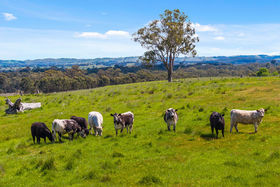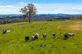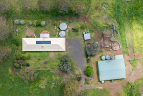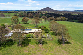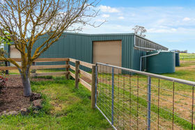 Outside, a wide wraparound verandah and covered alfresco area provide the perfect setting for year-round entertaining and soaking in the spectacular district views. The gently undulating land features fertile volcanic soils, with the front five acres yielding up to 40 rounds of hay annually.