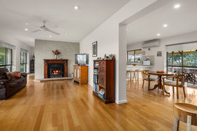 The beautifully presented, north-facing double-brick residence has been designed for comfort, functionality, and seamless connection to its breathtaking surroundings. A wide, welcoming entry leads to a generous floorplan featuring four spacious bedrooms, including a master suite with expansive walk-in robe and ensuite with walk-in shower. A separate study or fifth bedroom offers the ideal home office with NBN access, while the living areas include a lounge with fireplace, a formal dining room with fireplace, and a large rumpus room " perfect for family gatherings or entertaining.