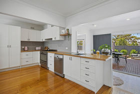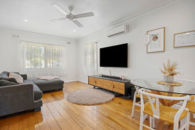 Do not be fooled by the cute period façade of this classic North Bendigo mid-century weatherboard. Beyond the picket fence and the pale pink door is a genuine family home fit for contemporary living. Stand-out original features include polished timber floorboards, high ceilings and decorative cornice. Beautiful updates and additions include new bathroom, ensuite and kitchen; the latter with a pantry and 900mm stainless steel freestanding stove. Plus, ducted gas heating and four split systems throughout kept efficient thanks to a 5.8kw solar system. The good life continues outside thanks to an outstanding elevated deck with raked roofline, downlights, feature fan and views of the garden and neighbourhood gumtrees.