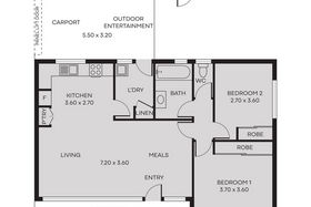 This two-bedroom unit offers a functional layout with a combined living and dining area positioned at the front of the home. Windows across the front allow natural light into the living space, with awnings fitted to provide shade when required.